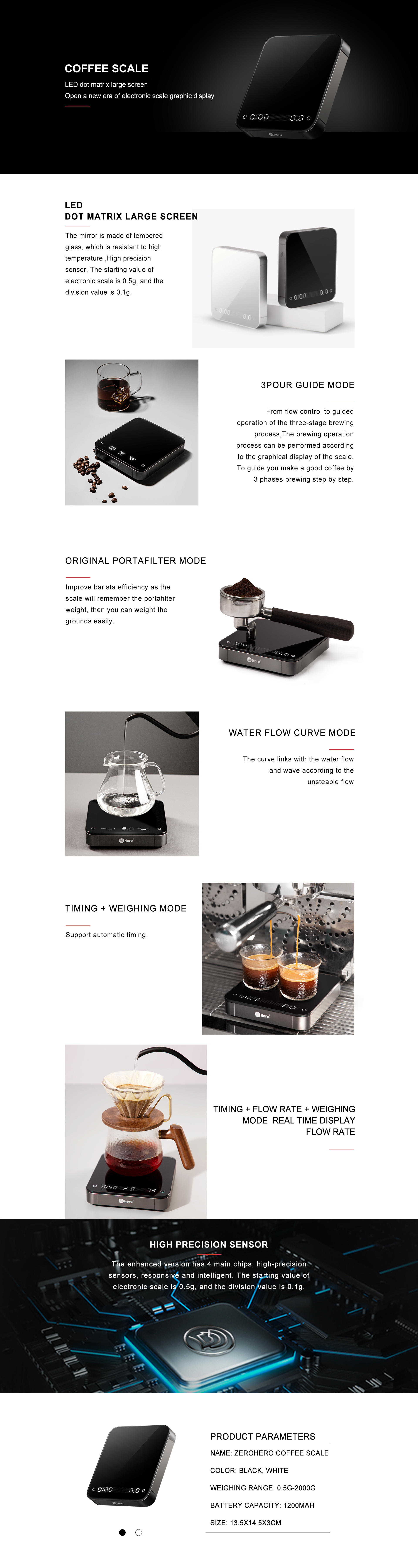 Color: Black/White Material: Termpering glass, Aluminum Alloy Accuracy: 0.1g Use scenario: Pour over/ Espresso