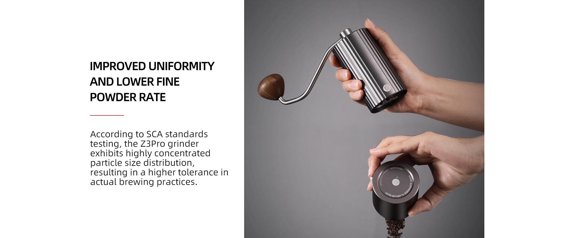 Product Name: Z3Pro Manual Grinder Burr:38mm 6 axis titanium coated stainless steel burr Color: Gray, Silver, Green, Purple, Brown Capacity: Bean Hopper 25g + Grounds Container 25g