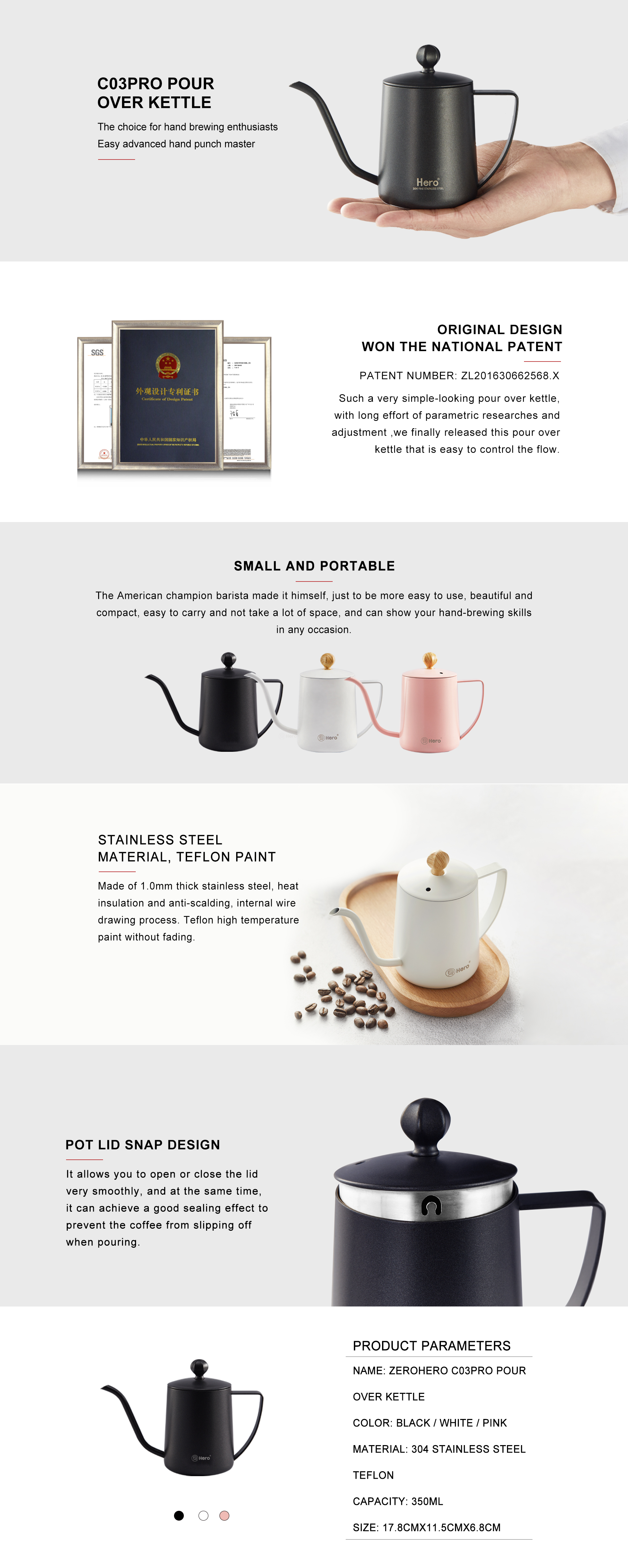 Color: Black/White/Pink Capacity: 350ml Material: SUS 304, Teflon