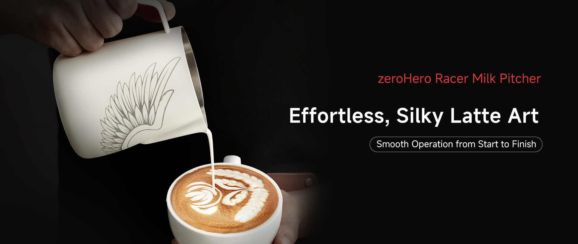 Dual V-Shaped Flow Grooves Smooth and Stable Latte Art Flow Large V-spout gathers the required milk volume for easy flow Small V-spout controls flow rate for more detailed latte art designs